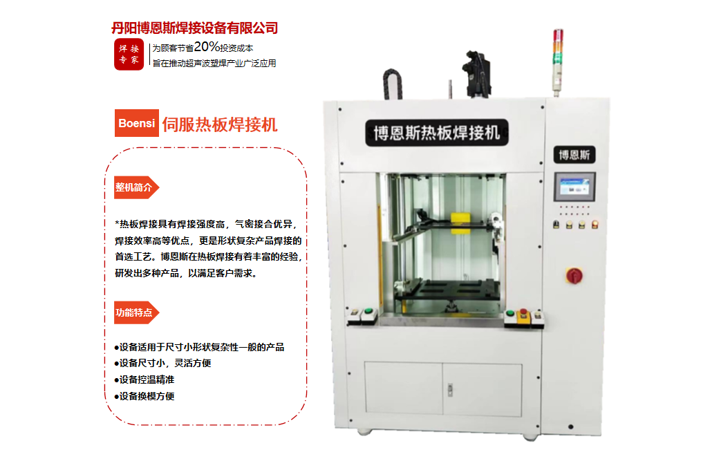 丹陽博恩斯焊接設備有限公司是塑料焊接領域集研發(fā)設計、生產制造、銷售服務為一體的企業(yè)。公司自成立以來堅持“以人為本”的理念,組織了一支強大的技術研發(fā)團隊,攜多年來積累的豐富經驗,并結合國際先進塑料焊接技術,根據(jù)市場需要,不斷開發(fā)具有核心競爭力的新產品。公司具有很強的非標機械研發(fā)、設計、生產能力,可為廣大客戶定制各類專用機械設備。公司設計生產的塑料焊接設備已廣泛應用于汽車、電子、家電、醫(yī)療器械、無紡布...